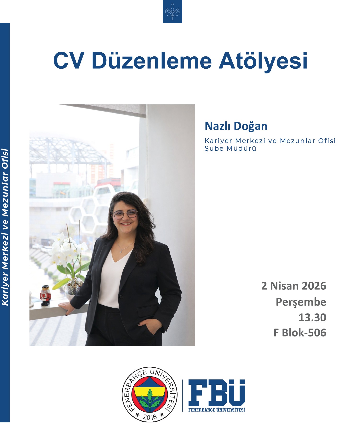 Bu atölyede, Kariyer Merkezi ve Mezunlar Ofisi Şube Müdürü Nazlı Doğan’ın deneyimlerinden faydalanarak CV’ni daha etkili, profesyonel ve dikkat çekici bir hale getirmeyi öğreneceksin.