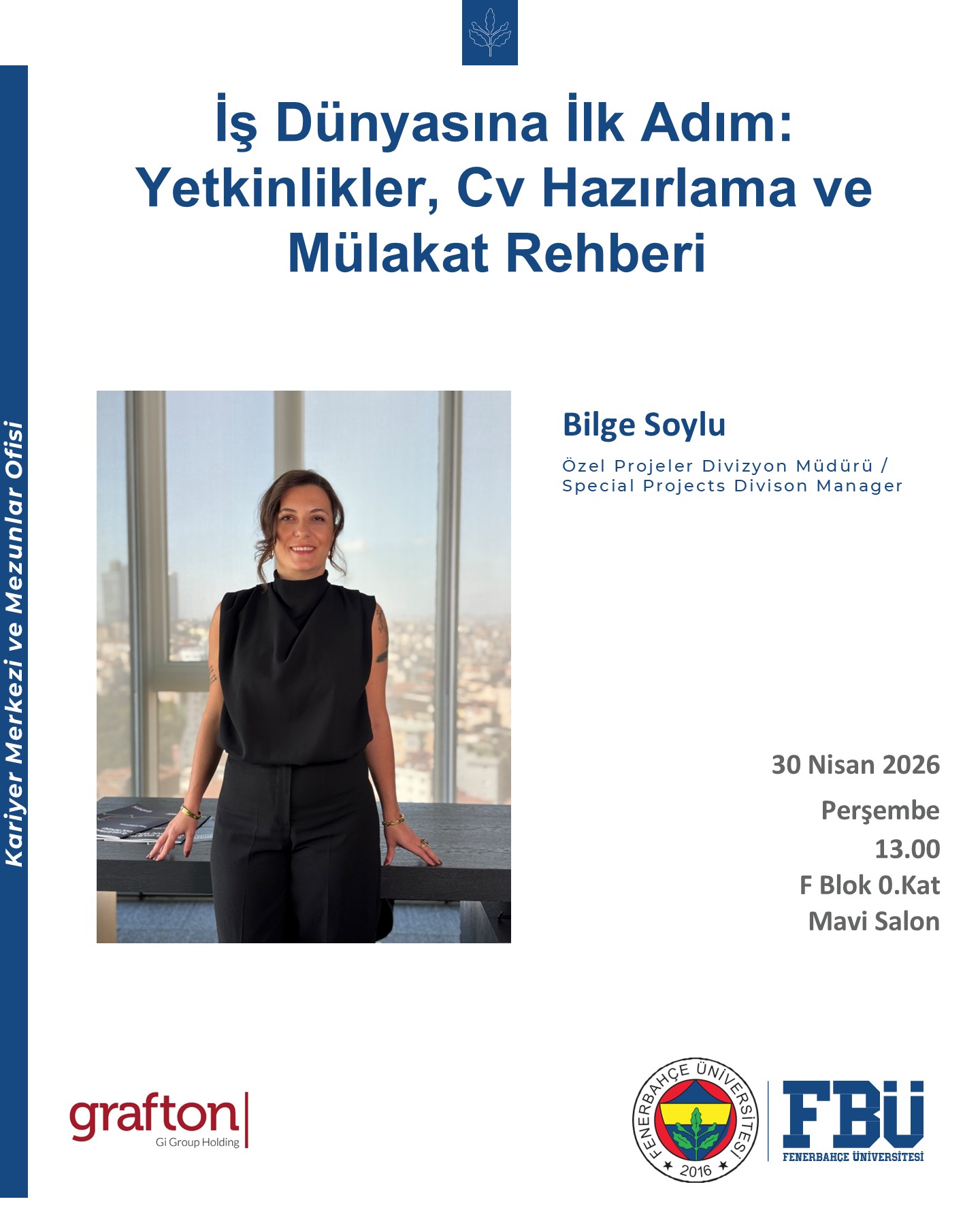 Kariyer Merkezi ve Mezunlar Ofisi olarak sizleri, kariyer yolculuğunuzda fark yaratacak “İş Dünyasına İlk Adım: Yetkinlikler, CV Hazırlama ve Mülakat Rehberi” etkinliğine davet ediyoruz.
